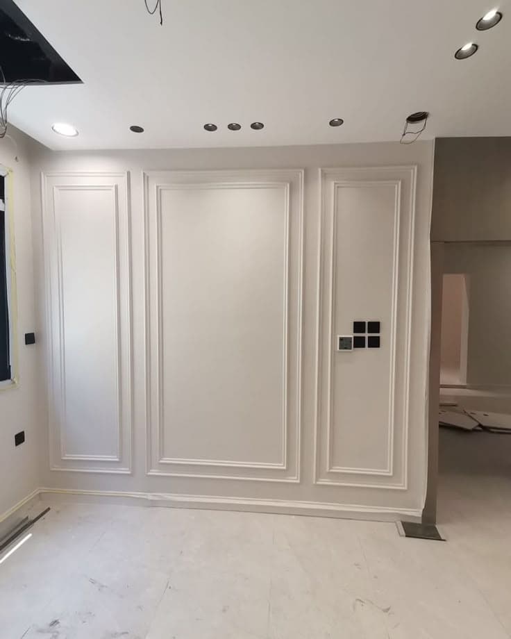 نركب كرانيش وزوايا جبسية بشكل دقيق لتحديد الانتقالات وإبراز أناقة الخطوط المعمارية